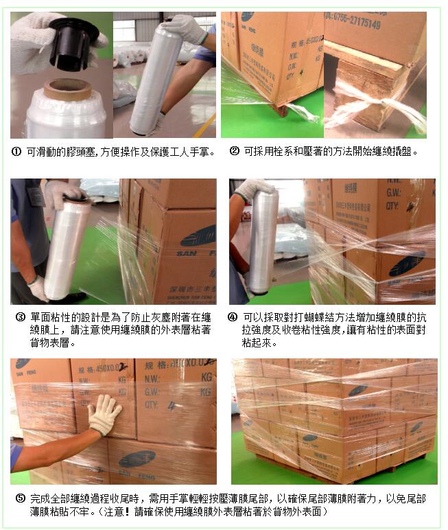 纏繞膜又稱“拉伸膜”,可分為手用膜和機用膜,是采用高品質聚乙烯及其他特種材料比例配方生產。具有透明度高、縱向延展性好、回彈力強、橫向抗撕性好、耐穿刺性能好、自粘搭性優良等特點。